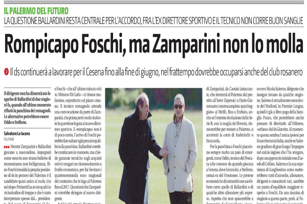 Giornale di Sicilia: “Rompicapo Foschi, ma Zamparini non lo molla”