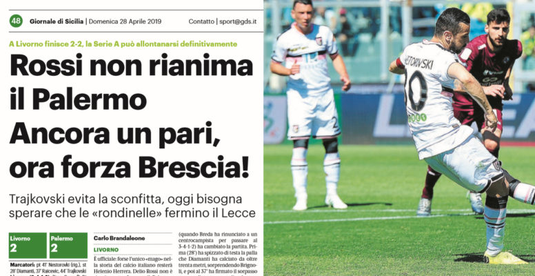Delio Rossi non ha trasformato il Palermo, scrive l’edizione odierna de “Il Giornale di Sicilia”. Che non avesse la bacchetta magica, in effetti lo aveva già detto durante la conferenza stampa di presentazione. Il ritorno del tecnico tanto amato dai tifosi non ha portato l’effetto sperato. I rosanero tornano da Livorno con un solo punto, frutto di un pareggio conquistato sul finale. un risultato che potrebbe aver compromesso la serie A diretta. Il Lecce è a +2. Al Palermo non resta che tifare Brescia nello scontro diretto di questa sera tra rondinelle e salentini.