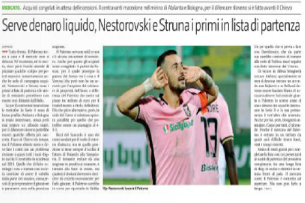 Giornale di Sicilia: “Serve denaro liquido. Nestorovski e Struna i primi in lista di partenza”