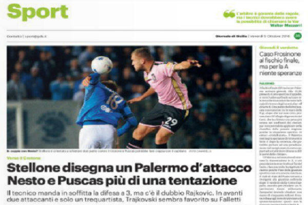 Giornale di Sicilia: “Stellone disegna un Palermo d’attacco. Nesto e Puscas…”