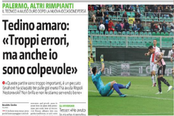 Giornale di Sicilia: “Tedino amaro: «Troppi errori, ma anche io sono colpevole»”
