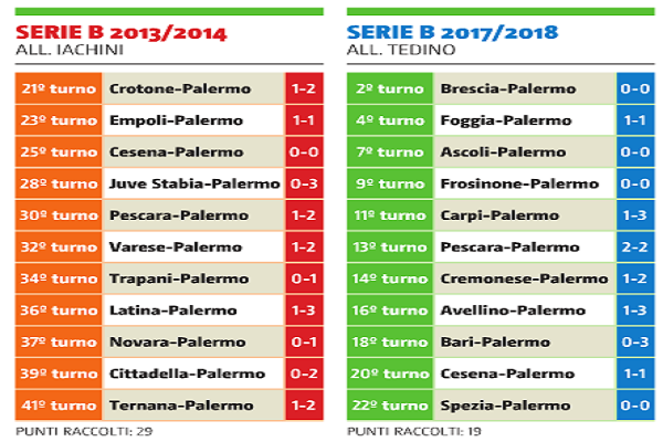 L’edizione odierna de “Il Giornale di Sicilia” ha messo a confronto il Palermo da record di Beppe Iachini e quello di Tedino, destinato a batterli e crearne di altri. Ecco quanto si legge: