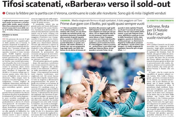 Giornale di Sicilia: “Tifosi scatenati, Barbera verso il sold-out”
