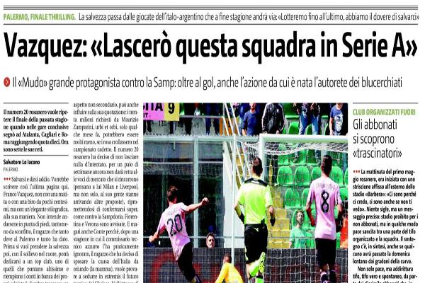 Giornale di Sicilia: “Vazquez: «Lascerò questa squadra in serie A»”