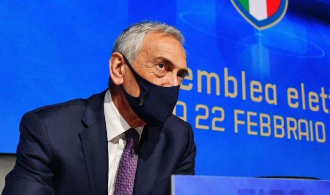 during the FIGC Elective Assembly at Cavalieri Waldorf Astoria Hotel on February 21, 2021 in Rome, Italy.