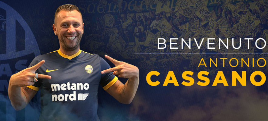 “L’Hellas Verona FC comunica di aver acquisito le prestazioni sportive del calciatore Antonio Cassano. L’attaccante gialloblù, dopo aver sostenuto le visite mediche nel pomeriggio, è partito alla volta di Primiero per raggiungere il ritiro dei gialloblù.