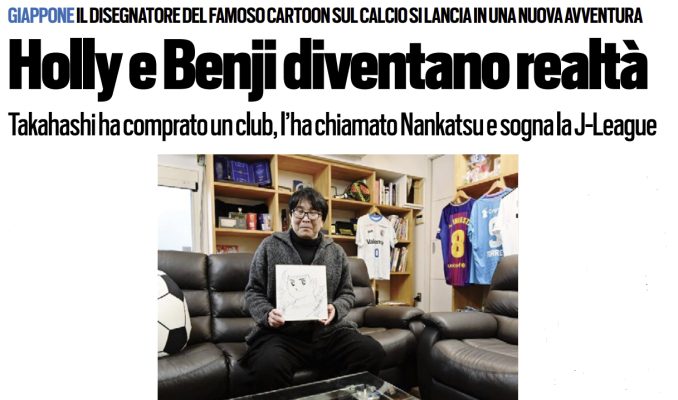 L’edizione odierna di Tuttosport si sofferma sul creatore della storia serie animata “Holly e Benji” che ha acquistato un club.