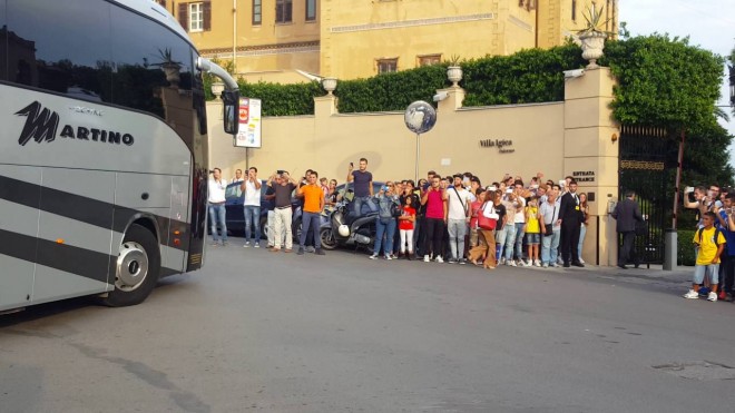 La Juventus arriva a Villa Igea, ad attenderli un centinaio di tifosi bianconeri (VIDEO)