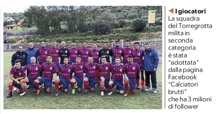 Un fenomeno mediatico che sta appassionando tutti i calciofili d’Italia. Il Torregrotta, società messinese che milita nel campionato di seconda categoria, è una delle squadre dilettantistiche più “social” con i suoi 7 mila follower su Facebook. Merito della partnership con la pagina Facebook Calciatori Brutti, che di follower ne ha quasi 3 milioni e ha scelto di seguire il Torregrotta trasmettendo ogni domenica le gare in diretta. Una sorta di Campioni 2.0, ricordando il Cervia di Ciccio Graziani.