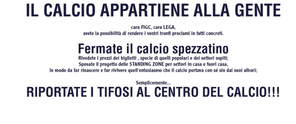 Questo il titolo del comunicato firmato da parte degli ultras di tutta Italia, dopo gli ultimi aneddoti nel mondo del calcio.