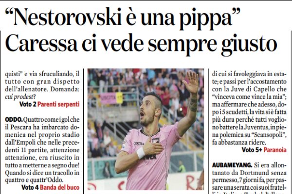 NESTOROVSKI. Da quando il cantore omerico Caressa ha tramandato ai posteri la famosa sentenza: “Nestorovski è una pippa”, il 26enne centravanti macedone, pur giocando in una squadra farlocca come il Palermo, non ha più smesso di far gol e di farsi beffe persino di Buffon (vedi traversa e gol in Macedonia-Italia 2-3). Dio perdona, Nestorovski no.
