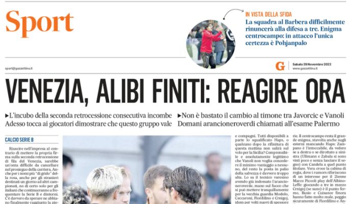 L’edizione odierna de “Il Gazzettino” si sofferma sulla gara che il Venezia affronterà contro il Palermo e sulla reazione che ci si aspetta dalla squadra di Vanoli.