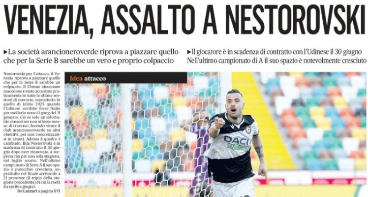 Dopo tanta panchina e un impiego a singhiozzo (85 presenze, 8 reti), la priorità dell’ex Palermo dovrebbe essere quella di avviarsi ad un finale di carriera da protagonista, risalendo in quella Serie B dove proprio in maglia rosanero si era invece distinto anche sul piano della prolificità (27 gol in 54 gare). Scontato il passo successivo, ovvero chiedersi se Nestorovski arriverebbe come partner di Joel Pohjanpalo per formare una coppia stellare per la cadetteria, oppure se già il solo accostamento sia una conferma che nonostante il contratto (scadenza 2025, più opzione unilaterale pro-club di prolungamento al 2027) il Venezia stia mettendo in preventivo di perdere il bomber finlandese.