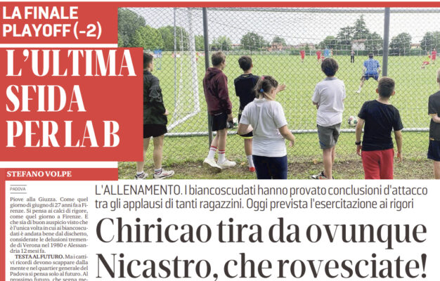 Il Mattino: “La finale playoff (-2). Padova. Oggi prevista l’esercitazione ai rigori. Chiricao tira da ovunque. Nicastro, che rovesciate!”