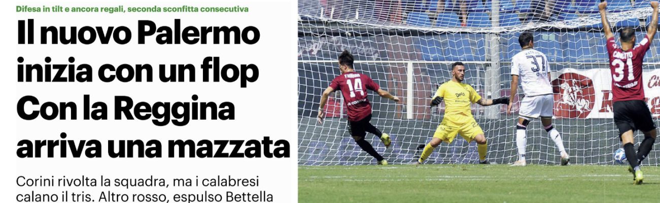 L’edizione odierna de “Il Giornale di Sicilia” si sofferma sulla batosta del Palermo di Corini rimediata ieri con la Reggina.
