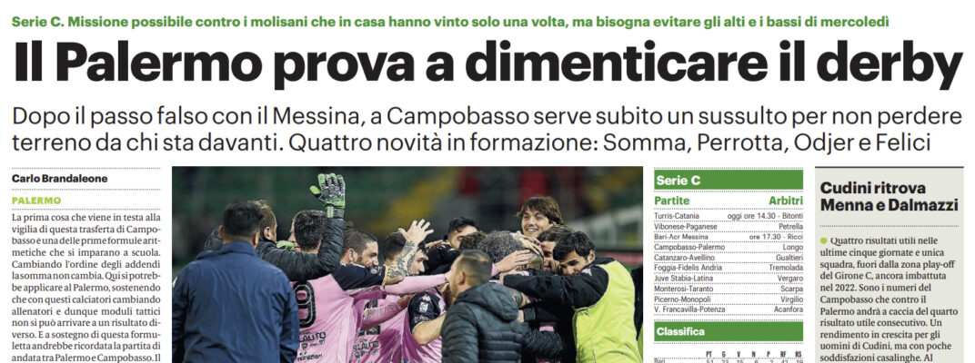 L’edizione odierna de “Il Giornale di Sicilia” si sofferma sulla gara di oggi che il Palermo giocherà contro il Campobasso.