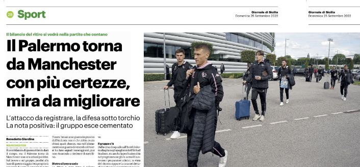 L’edizione odierna de “Il Giornale di Sicilia” si sofferma sul ritorno del Palermo da Manchester.