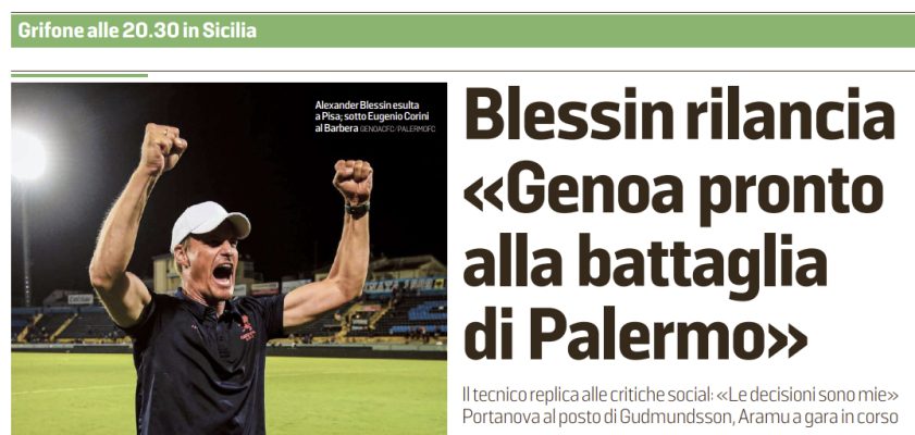 L’edizione odierna de “Il Secolo XIX” si sofferma sulle parole di Blessin in vista di Palermo-Genoa.