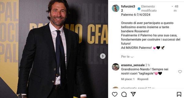 In occasione dell’inaugurazione del Palermo CFA a Torretta, il Palermo ha invitato alcune leggende rosanero per partecipare all’evento. Tra le leggende era presente anche Sforzini che, tramite un post sui social, ha voluto ringraziare club e tifosi.