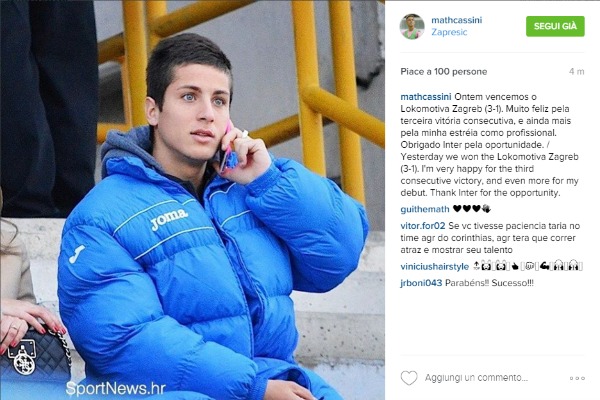 Pochi istanti fa il brasiliano Matheus Cassini, in prestito dal Palermo all’Inter Zapresic, ha pubblicato una nuova foto sul suo profilo “Instagram”. Il giovane attaccante ha mostrato tutta la sua felicità per l’esordio con la maglia dell’Inter Zapresic. Ecco in basso la foto:
