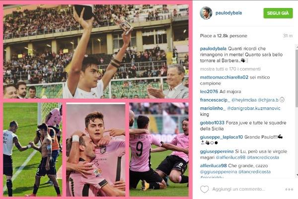 Domenica, in occasione della partita Palermo-Juventus, Paulo Dybala ritornerà a giocare nello stadio “Renzo Barbera” ma per la prima volta da avversario dei rosanero. La “Joya”, con una foto pubblicata sul proprio profilo Instagram, ricorda i momenti belli trascorsi nel capoluogo siciliano. Queste le parole scritte da Paulo: “Quanti ricordi che rimangono in mente! Quanto sarà bello tornare al Barbera…”. Sopra la foto postata da Dybala.