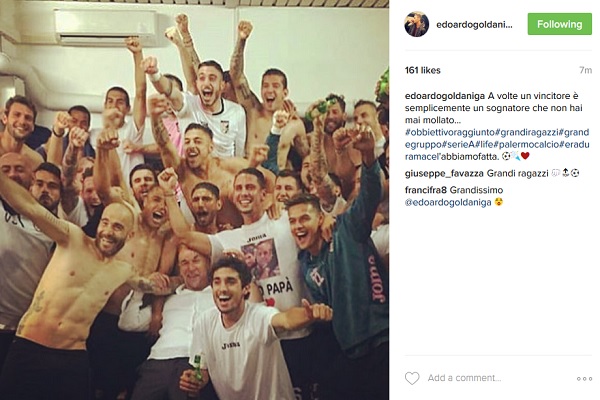 “A volte un vincitore è semplicemente un sognatore che non ha mai mollato…”. Con queste parole Edoardo Goldaniga ha voluto celebrare la salvezza conquistata dal Palermo attraverso il proprio profilo Instagram In alto il post del difensore rosanero.