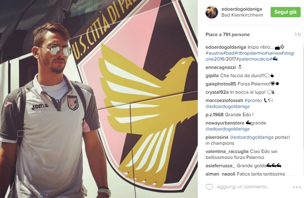 Il ritiro del Palermo in vista stagione 2016/17 di serie A è giunto al secondo giorno. Tra i convocati di mister Davide Ballardini c’è anche il difensore centrale Edoardo Goldaniga, che ha pubblicato uno scatto del proprio arrivo a Bad sul proprio profilo Instagram. In alto la foto in questione.
