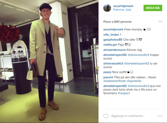 Il centrocampista svedese in forza al Palermo, Oscar Hiljemark, ha pubblicato sul proprio profilo Instagram questa foto: