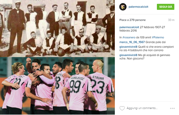 Instagram Palermo “27 febbraio 1907-27 febbraio 2016, 109 anni in rosanero!” (FOTO)