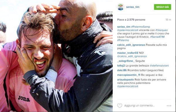 Attraverso il profilo Instagram ufficiale, la Serie A Tim ha esaltato la partita di Franco Vazquez contro la Sampdoria. Oggi il “Mudo” ha siglato il gol dell’1-0 e fatto l’assist che ha causato l’autogol di Krsticic. In alto la foto.