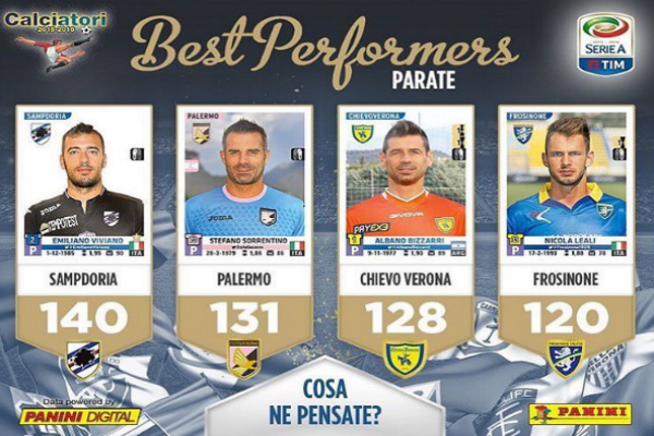Come mostra nel suo profilo personale “Instagram”, Stefano Sorrentino, ex portiere ed ex capitano rosanero, è stato inserito tra i “Best Performers” (categoria parate) delle figurine “Panini”. Con lui anche Viviano, Bizzarri e Leali. In alto la foto in questione.