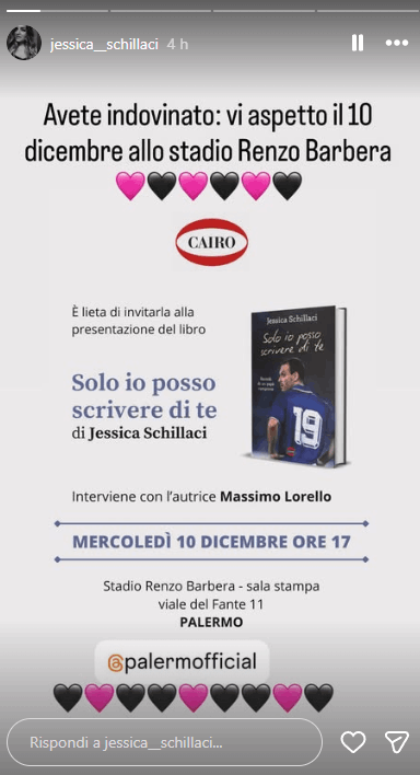 La presentazione ufficiale del libro si terrà mercoledì 10 dicembre alle ore 17:00 presso la sala stampa dello stadio Renzo Barbera, a Palermo. Durante l’evento, Jessica Schillaci condividerà con il pubblico dettagli e aneddoti sulla sua esperienza di figlia di un campione e sull’emozionante processo di scrittura che ha portato alla realizzazione di questo libro intimo e significativo.