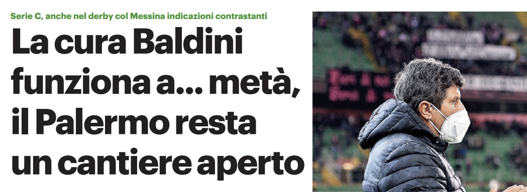 Il Palermo targato Silvio Baldini è ancora un cantiere aperto. La dimostrazione è arrivata nella partita contro il Messina, dove i rosa non sono riusciti a gestire il doppio vantaggio acquisito prima dell’intervallo. È passato poco più di un mese dall’arrivo in città dell’allenatore, ma i rosanero mostrano ancora luci e ombre, quelle che già in passato avevano caratterizzato il rendimento della squadra anche con Filippi. Il bilancio di Baldini, nei primi 270 minuti sulla panchina del Palermo, è di cinque punti frutto di una vittoria e due pareggi.
