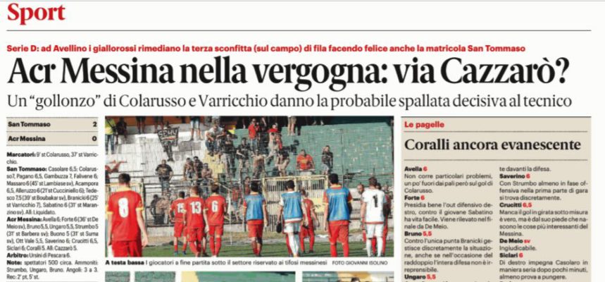 La Gazzetta del Sud: “Acr Messina nella vergogna: via Cazzarò?”