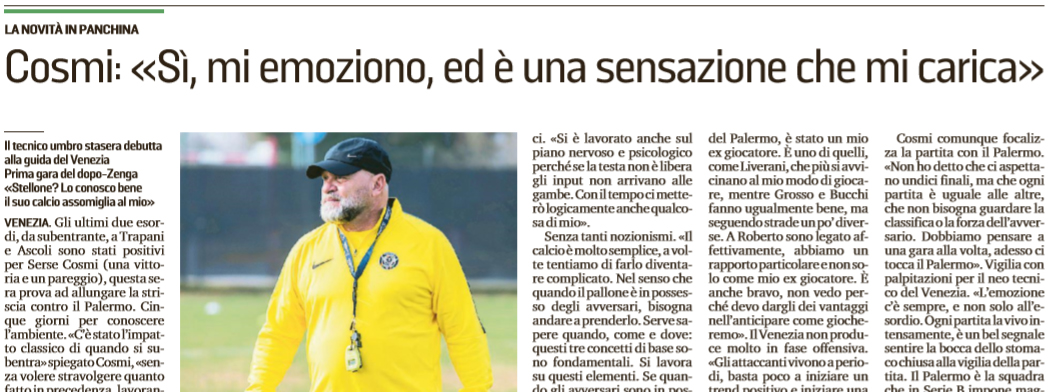 La Nuova Venezia: “Cosmi: «Sì, mi emoziono ed è una sensazione che mi carica»”