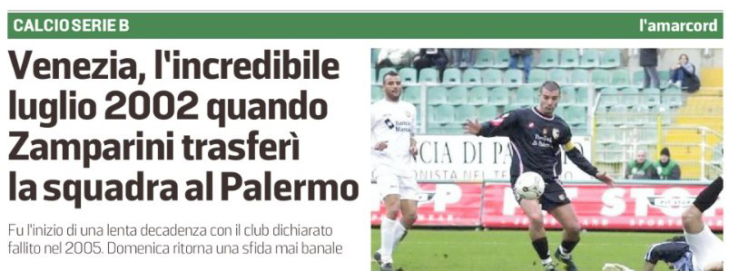 La Nuova Venezia: “Venezia, l’incredibile luglio 2002 quando Zamparini trasferì la squadra al Palermo”