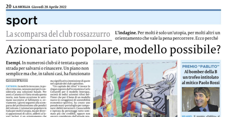 L’edizione odierna de “La Sicilia” si interroga sull’azionariato popolare e se fosse un modello possibile per il Catania.