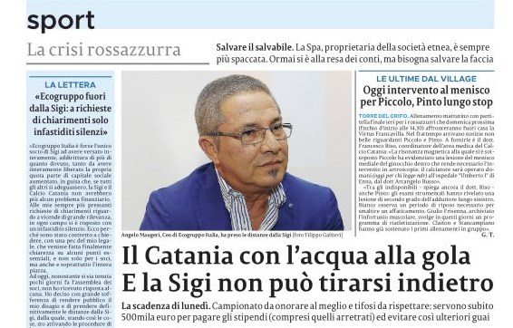 La Sicilia: “Catania con l’acqua alla gola, ancora nessun bonifico dalla Sigi”