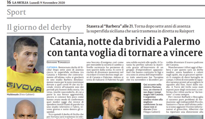 Dopo sette anni di assenza riecco la supersfida siciliana tra Catania e Palermo che si giocherà in uno stadio Barbera desolatamente vuoto per le note restrizioni dovute a quel covid 19 che sta facendo vivere all’umanità uno dei periodi più funesti della storia.