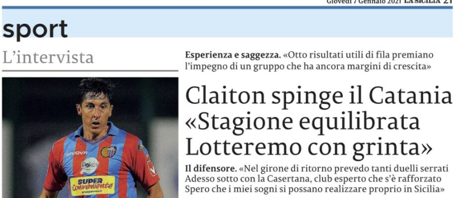 L’edizione odierna de “La Sicilia” riporta un’intervista realizzata al difensore del Catania Claiton.