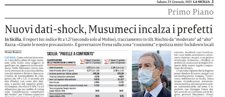 I dati della cabina di regia nazionale sulla Sicilia sono peggiori di quelli per cui, appena la scorsa settimana, Musumeci aveva chiesto la zona rossa.