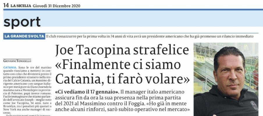 L’edizione odierna de “La Sicilia” parla della trattativa conclusa per il passaggio del Catania nelle mani di Tacopina.