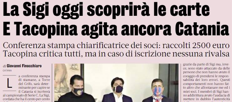 La Sigi oggi scoprirà le carte. E Tacopina agita ancora Catania