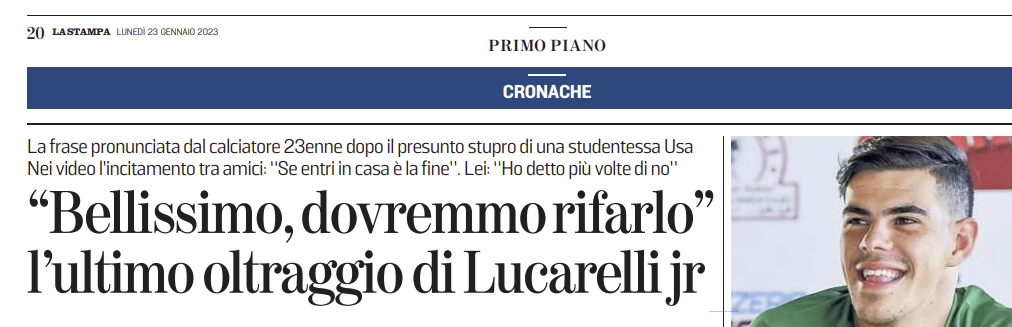 La Stampa: “«Bellissimo, dovremmo rifarlo», l’ultimo oltraggio di Lucarelli jr”
