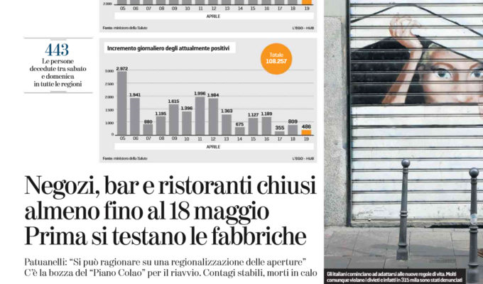 La Stampa: “Italia. C’è la bozza del “Piano Colao” per il riavvio. Negozi, bar e ristoranti chiusi almeno fino al 18 maggio. Prima le fabbriche”