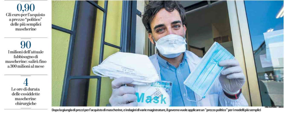 La Stampa: “Mascherine obbligatorie”, Il governo imporrà i prezzi. Conte «Le useremo finché non ci sarà il vaccino», le più semplici costeranno 90 centesimi”