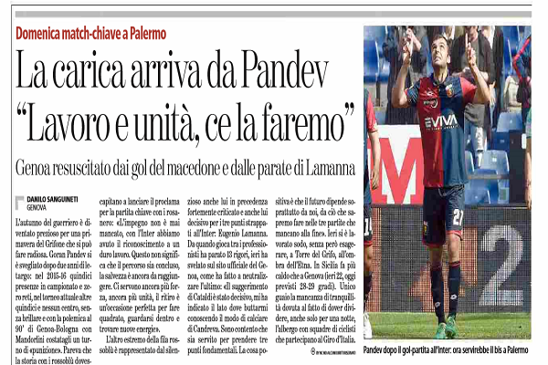 La Stampa: “Pandev carica il Genoa in vista di Palermo: «Lavoro e unità, ce la faremo!»”