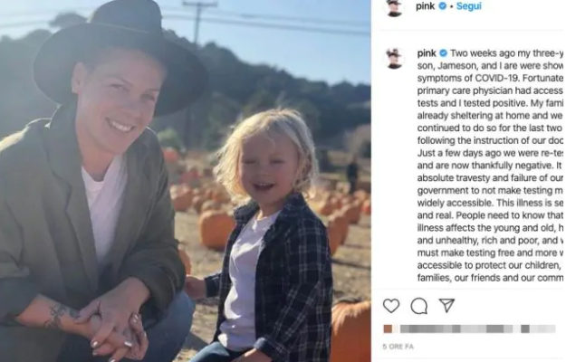 L’annuncio della cantante Pink: “Io e mio figlio di tre anni siamo positivi” Donato 1 milione di dollari alla lotta a Covid-19