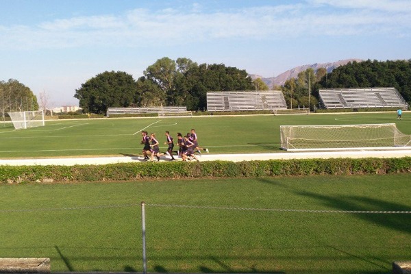 Subito dopo la partitella a campo ridotto, il Palermo ha proseguito l’allenamento pomeridiano a Boccadifalco con una corsa blanda a bordo campo; la squadra è stata suddivisa in due gruppi per poter svolgere diverse parti di allenamento. In alto una foto scattata direttamente dal campo di Boccadifalco.