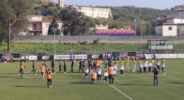 4′ Prima occasione per il Nola con Cappiello che recupera il pallone su verticalizzazione di un compagno ed entra in area di rigore per poi essere fermato dal difensore rosanero.
